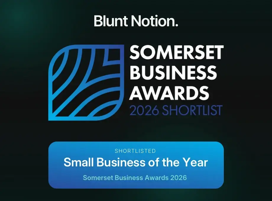 Blunt Notion has been shortlisted for Small Business of the Year Award at the Somerset Business Awards 2026, organised by the Somerset Chamber of Commerce.